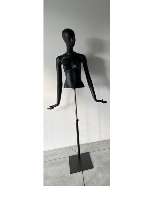 Busto nero opaco con testa stratta completo di braccia e base rettangolare ferro verniciata nero opaco .