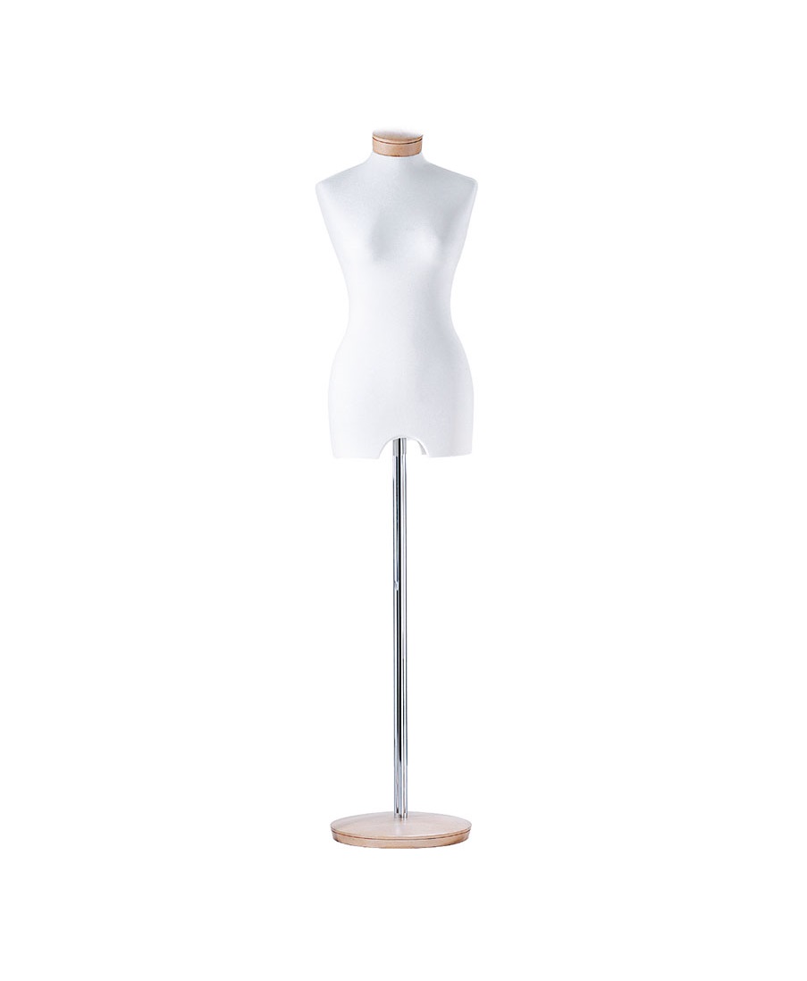 Busto sartoriale donna con maglina avorio e completo di base tonda e copri collo legno