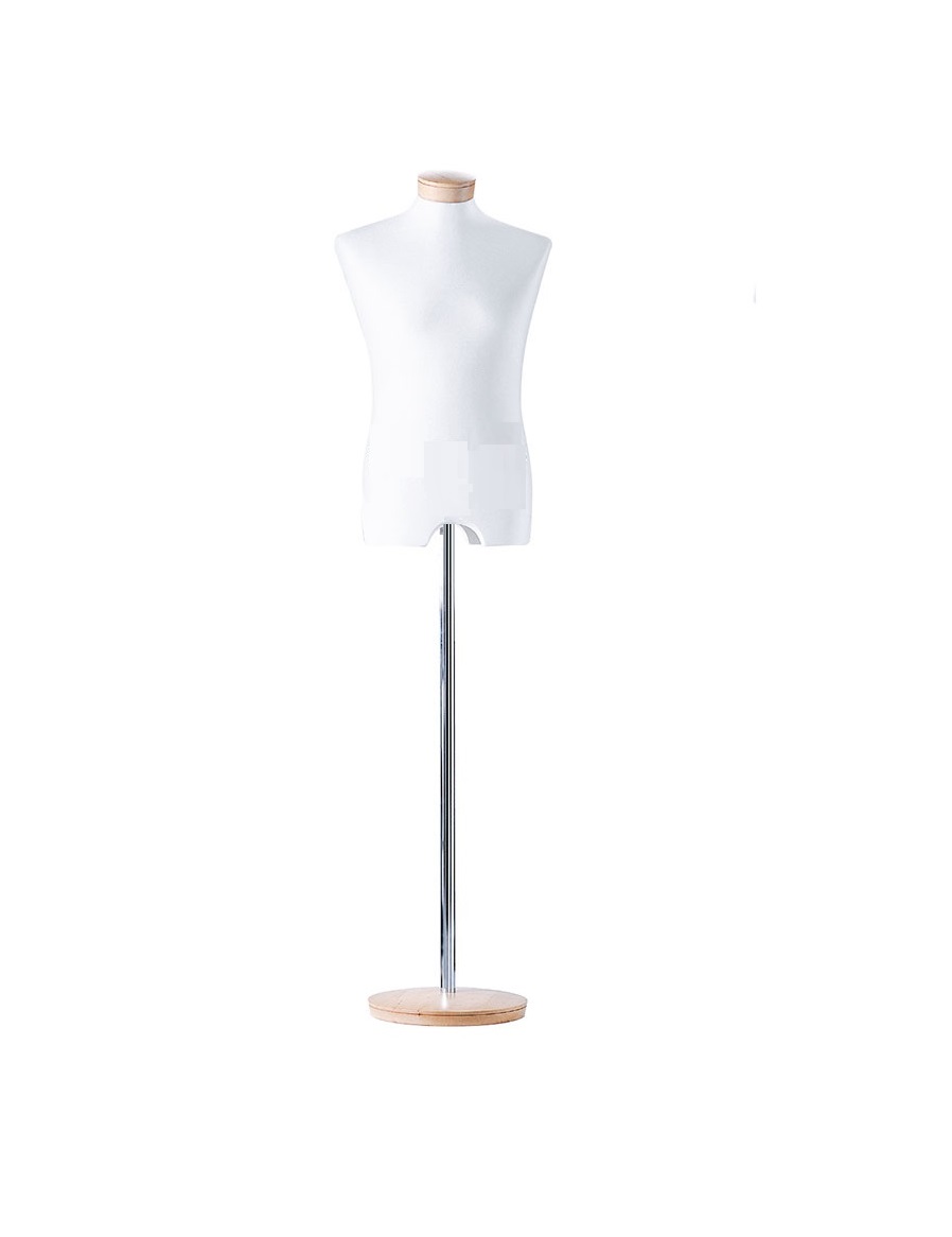 Busto sartoriale uomo con maglina avorio e completo di base tonda e copri collo legno