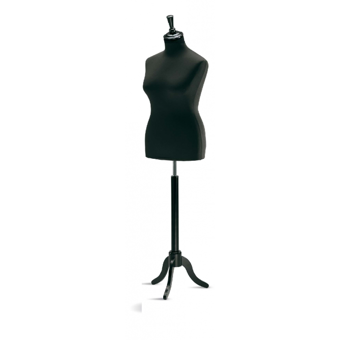 Busto donna sartoriale curvy con maglina nera completo di base tre piedi tappo copri collo legno nera .