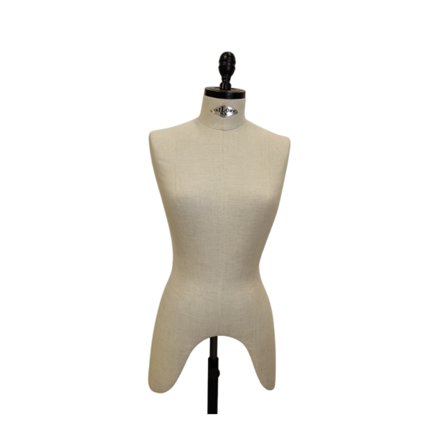Busto uomo sartoriale in polistirolo ricoperto con maglina bianca , con base quadra e tappo copri collo cromato altezza regolabile
