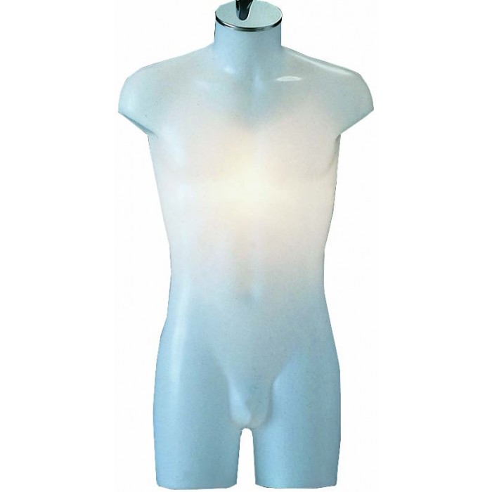 Busto Uomo pre colorato bianco luminoso ,senza base , dalla perfetta vestibilità e dall’ ottimo rapporto qualità-prezzo si presta per esporre l’intimo, costumi da bagno o qualunque altra esigenza del vostro negozio