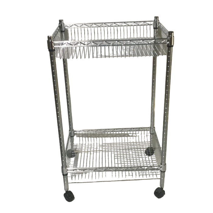 Cesta due piani regolabili in filo cromato cesta cm.45x60x17h altezza totale cm.95 su ruote