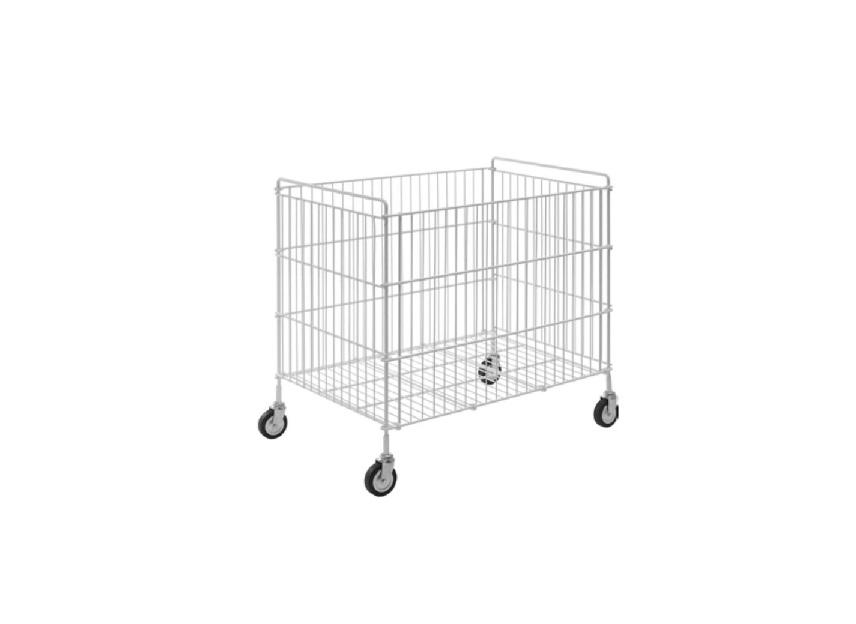 Cesta pieghevole in tondino di ferro plastificato bianco con ruote a forcella dm.80 Disponibile in tre misure :