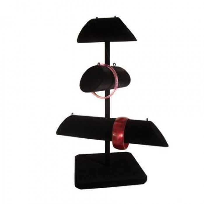 Espositore alberello per bracciali basamento e asta in legno floccato nero cilindri in poliuretano floccato nero dimensione cm.23x36h