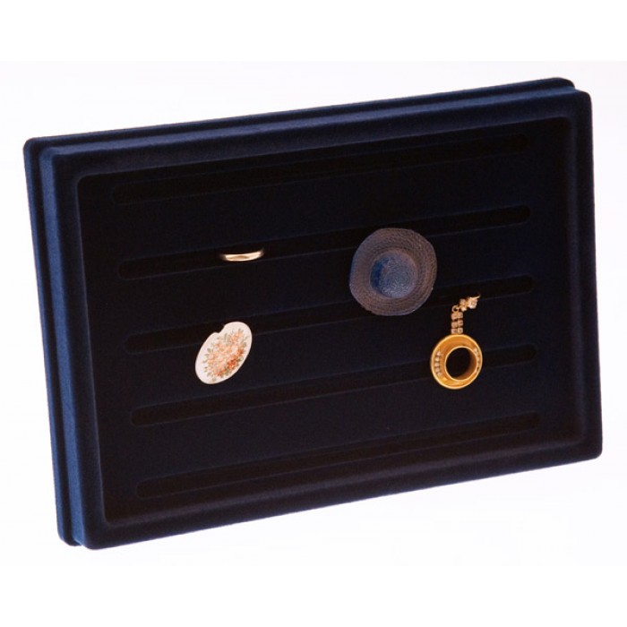 Espositore inclinato in plastica floccata nera per anelli e orecchini larghezza cm.34xcm.26 altezza