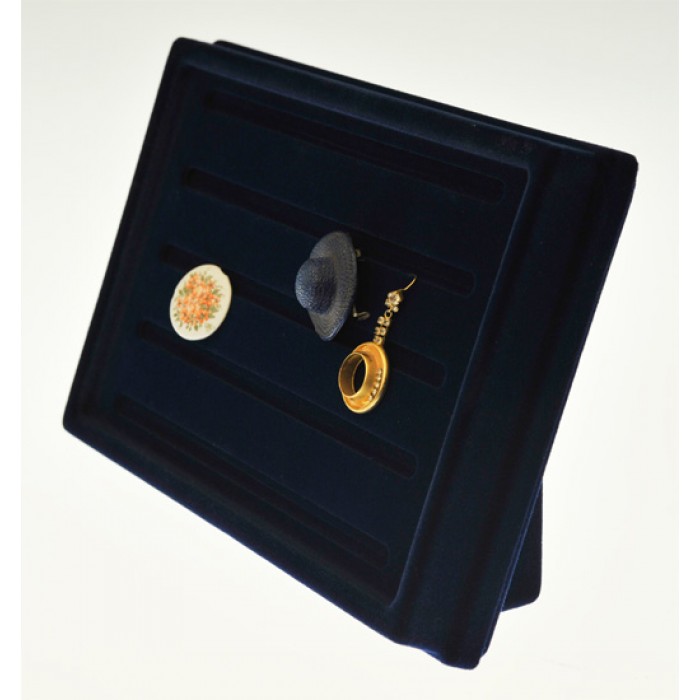 Espositore inclinato per anelli o orecchini in plastica floccato nero larghezza cm.26xcm.17 altezza