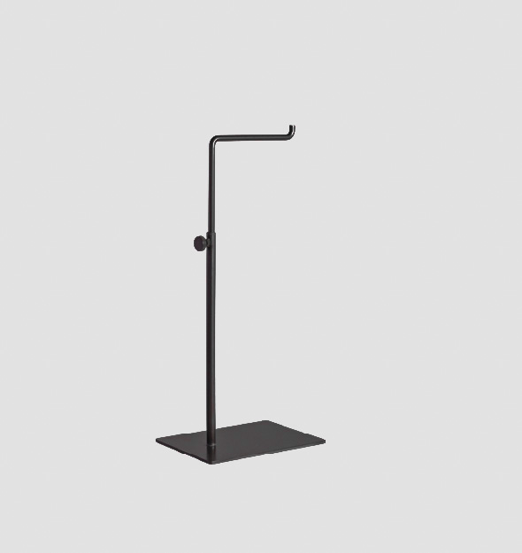 L’espositore è fornito con base e supporto in finitura verniciato nero , asta regolabile in altezza