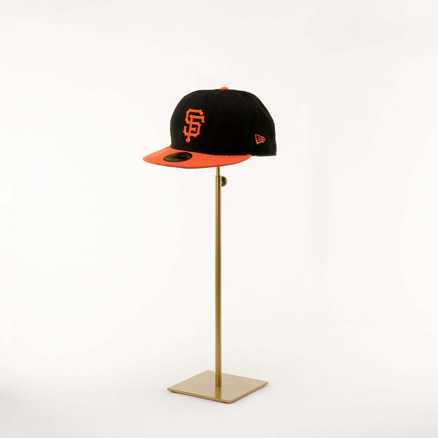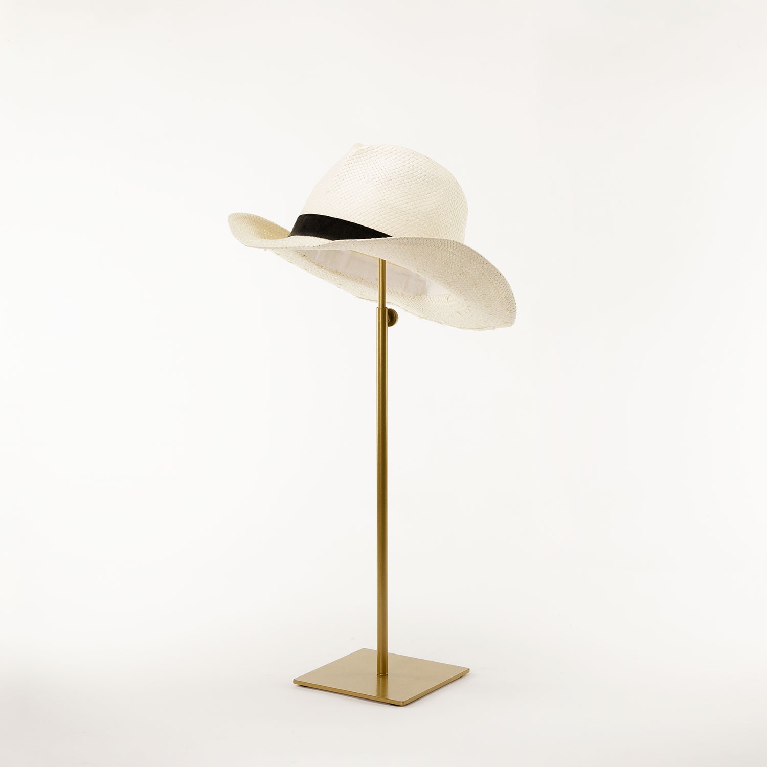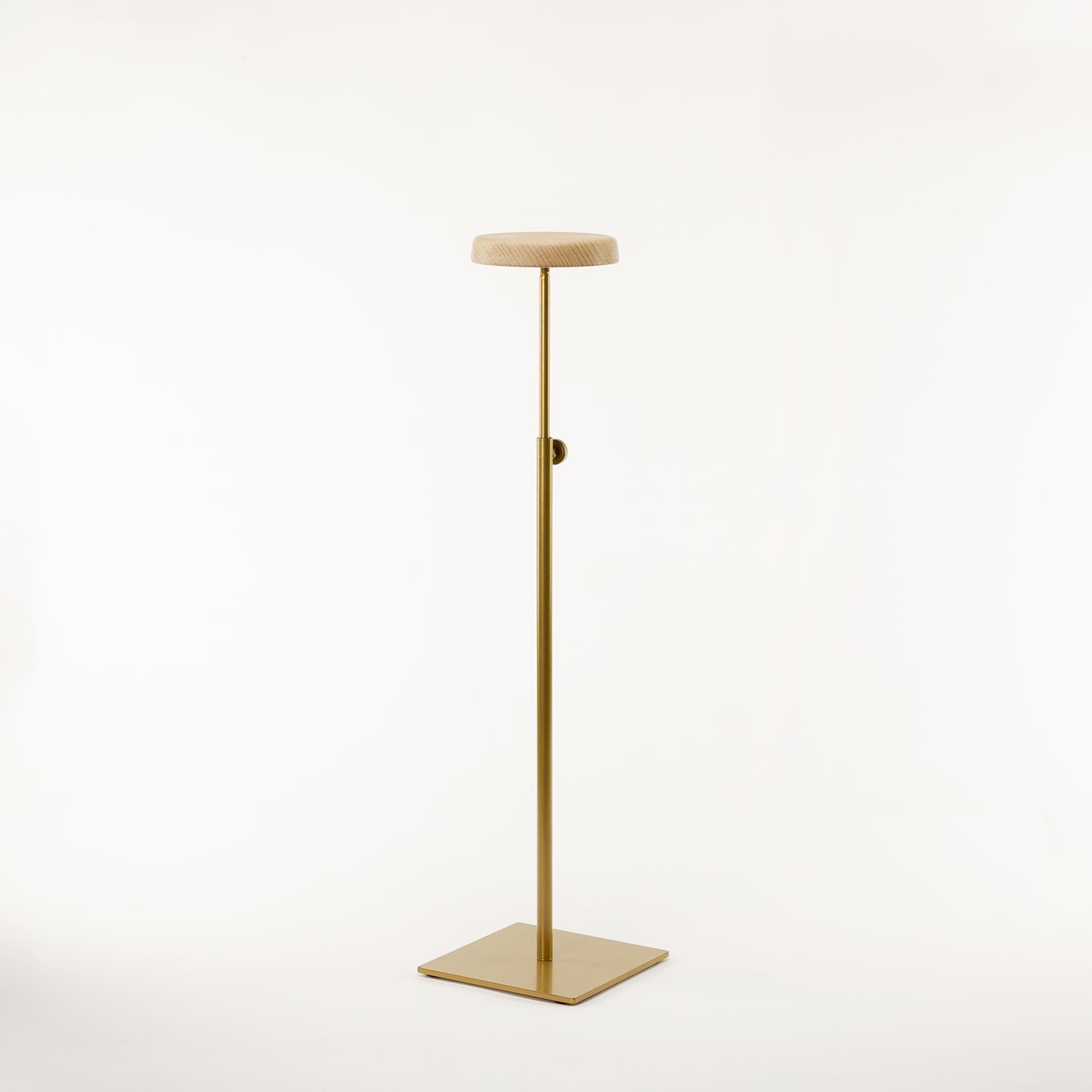 L’espositore è fornito con base e supporto in finitura verniciato oro ral 1021 , aste regolabile in altezza