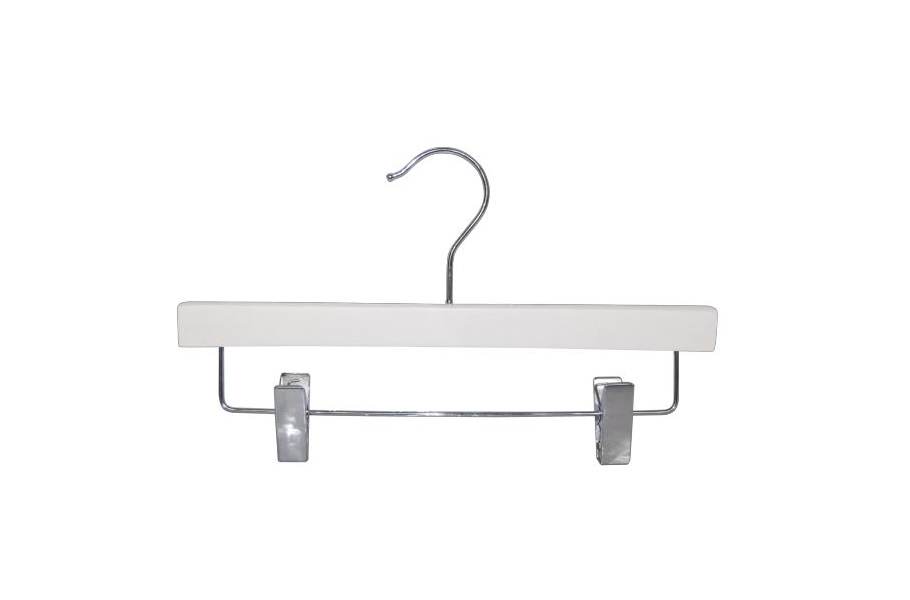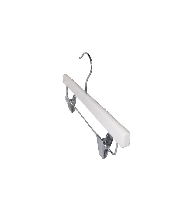 Gruccia legno laccato bianco con pinze e gancio cromate