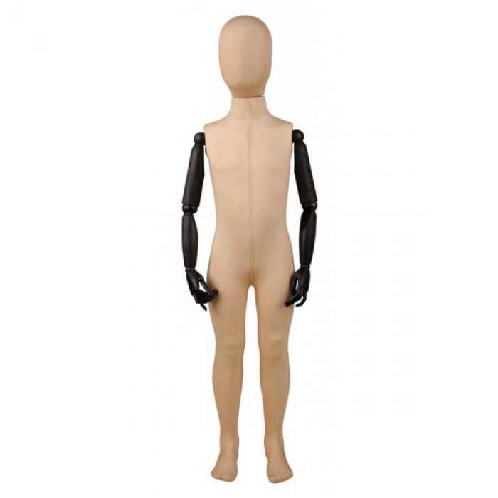 Manichino bimbo/a 6/8 anni vintage tutto in tessuto di cotone vintage , con testa a uovo. Braccia articolate in legno laccato nero