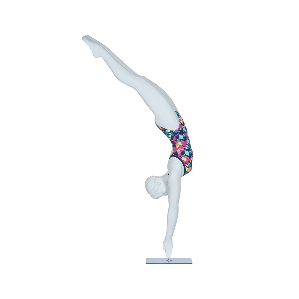 Manichino nuoto in tuffo donna scolpito ,colore bianco opaco ,completo di base tonda cristallo temperato , misure di ingombro