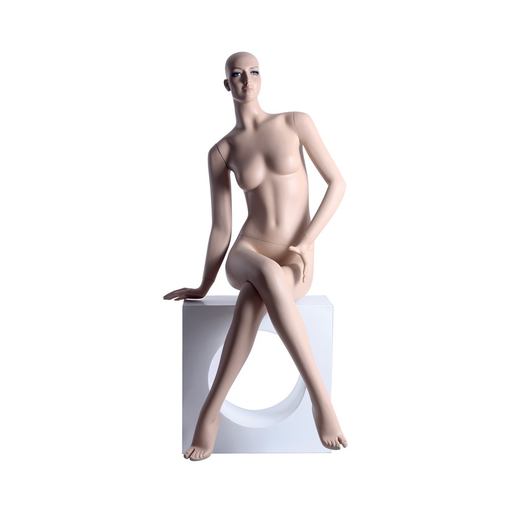 Manichino donna realistico colore naturale make-up completo di parrucca in posizione seduto