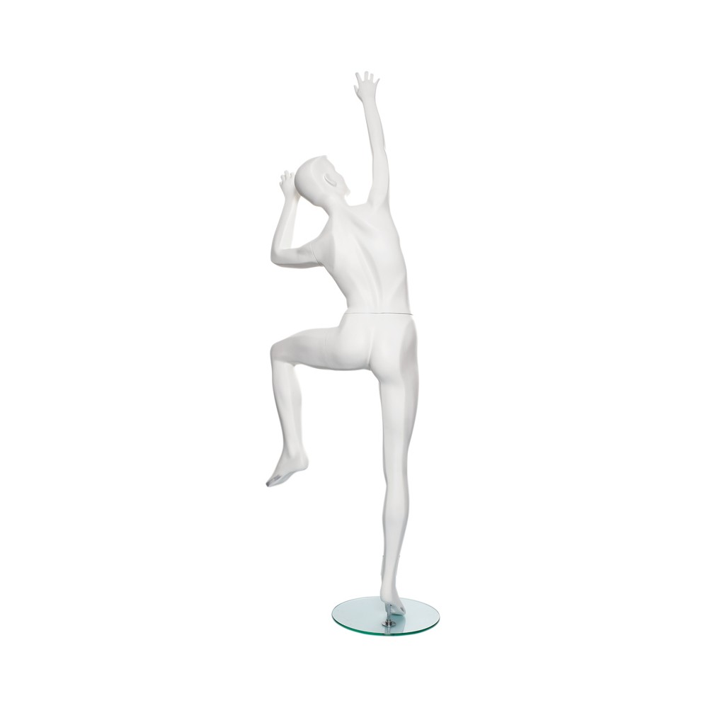Manichino scalatrice donna scolpito ,colore bianco opaco ,completo di base tonda cristallo temperato , misure di ingombro Altezza cm.220 misure manichino seno cm.87 vita cm.65
