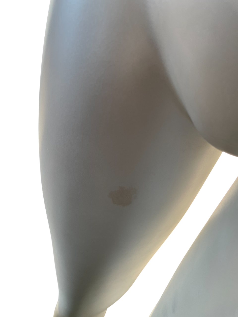 Manichino donna testa astratta colore bianco perlato con di base tonda in cristallo ,il manichino è completo di parte di busto per creare solo la gamba di esposizione vedi immagini. presenta alcune imperfezioni alla verniciatura ci sono le immagini