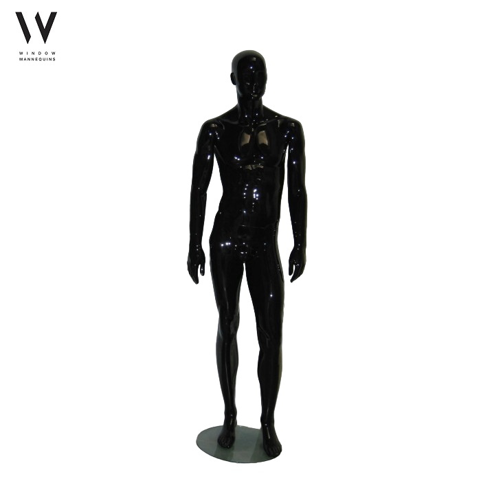 Manichino uomo astratto Window France laccato nero lucido , completo di base cristallo rotonda , c/attacco sotto piede e polpaccio.