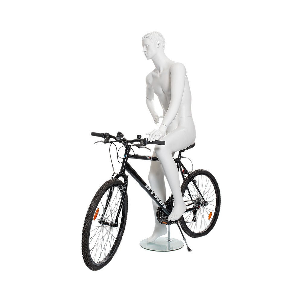 Manichino uomo sport Bike testa scolpito ,colore bianco opaco ,completo di base tonda cristallo temperato