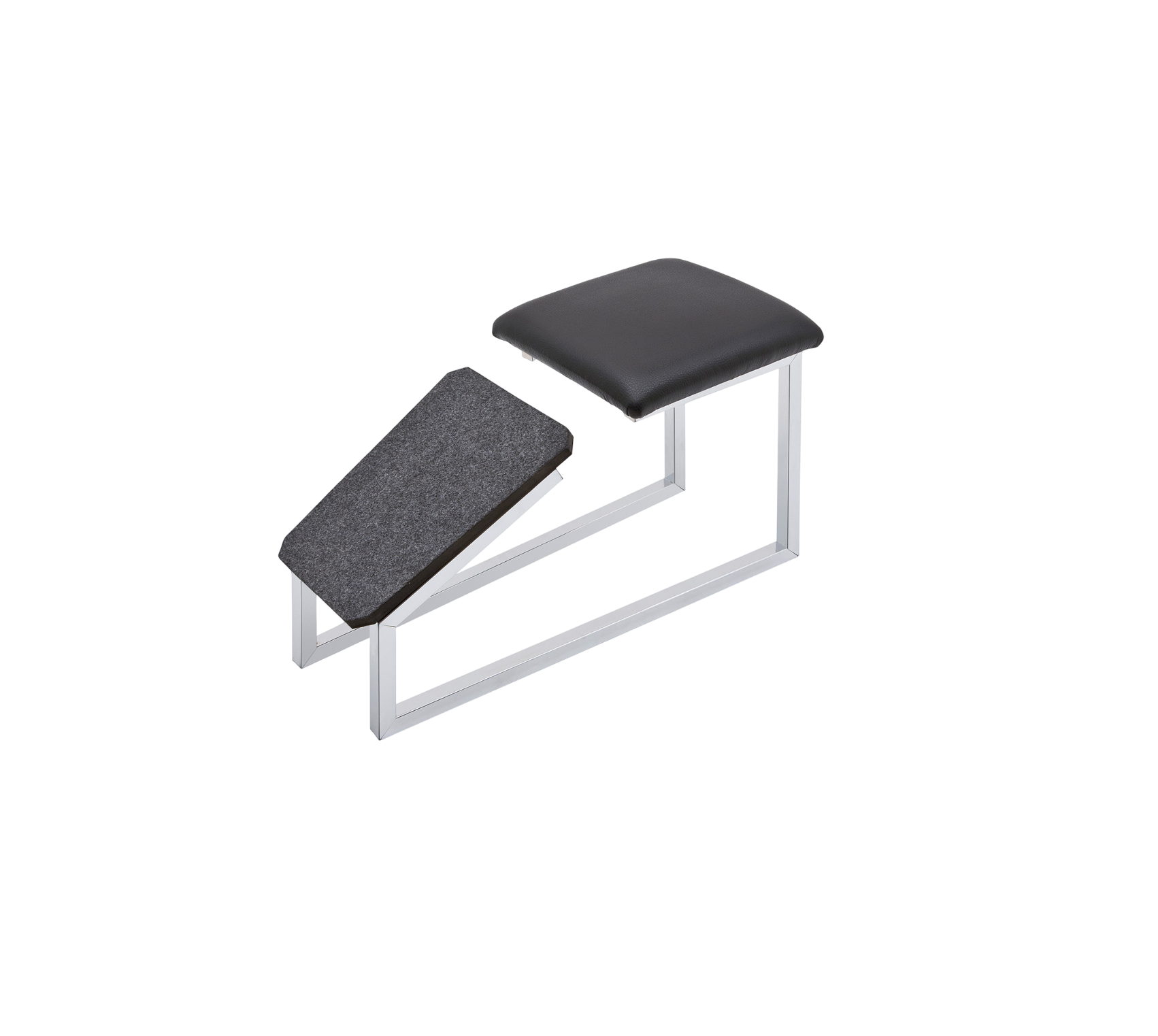 Sgabello provascarpe struttura in tubo quadrato cromato, seduta imbottitura in eco pelle nera