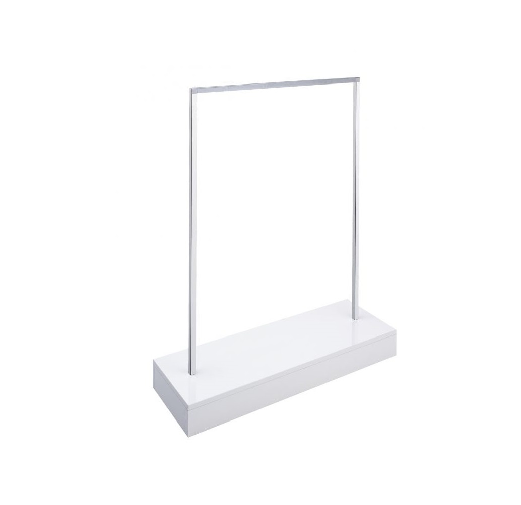 Stender in ferro cromato in tubo quadrato 25×25. con base in legno in versioni di due colori BIANCO LUCIDO