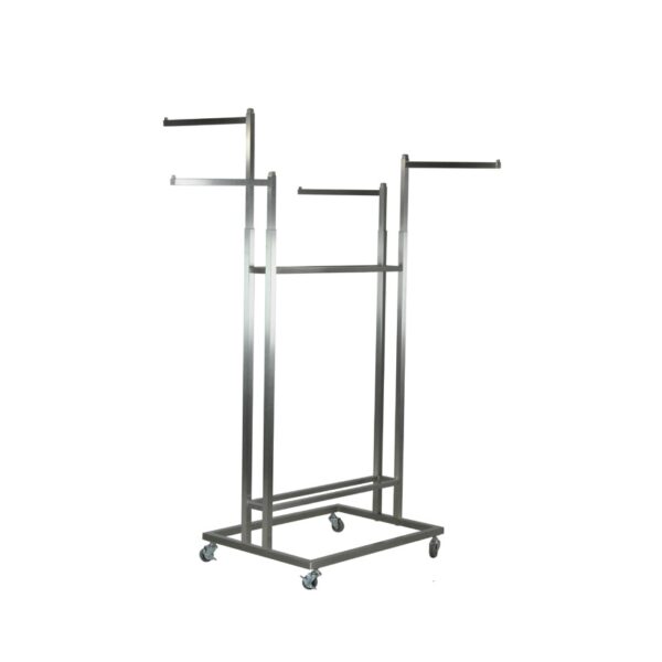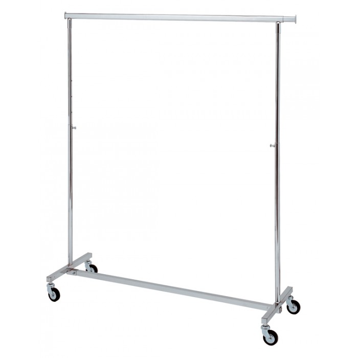 Stender pieghevole cromato con sistema a ribalta ,Altezza regolabile con sistema a innesto, che permette di regolare semplicemente all’altezza desiderata con sicurezza il piede a tubo quadrato ruote dm.80 mm con due autobloccanti
