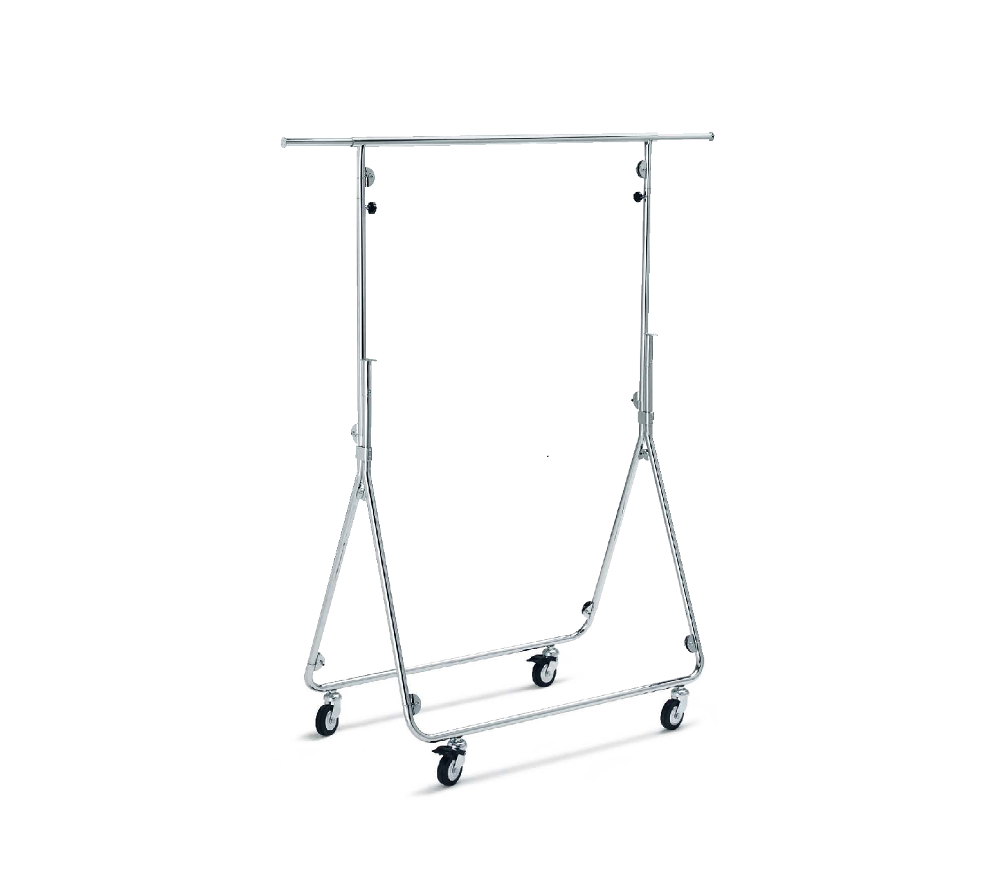 Stender pieghevole ,in ferro cromato . Ideale per rappresentanti in quanto particolarmente maneggevole , perfetto per essere frequentemente trasportato.