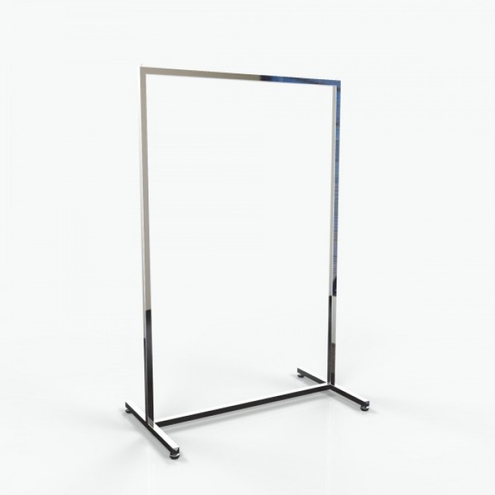 Stender in tubo quadro 25×25 ferro cromato con piedi a T . larghezza cm.90 Altezza cm.152 base cm.50