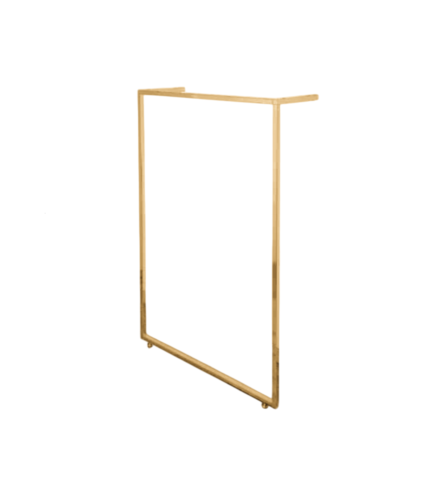 Struttura semplice a parete in tubo quadrato cm.2,5×2,5 con piedini regolabili finitura ferro verniciato a polveri oro