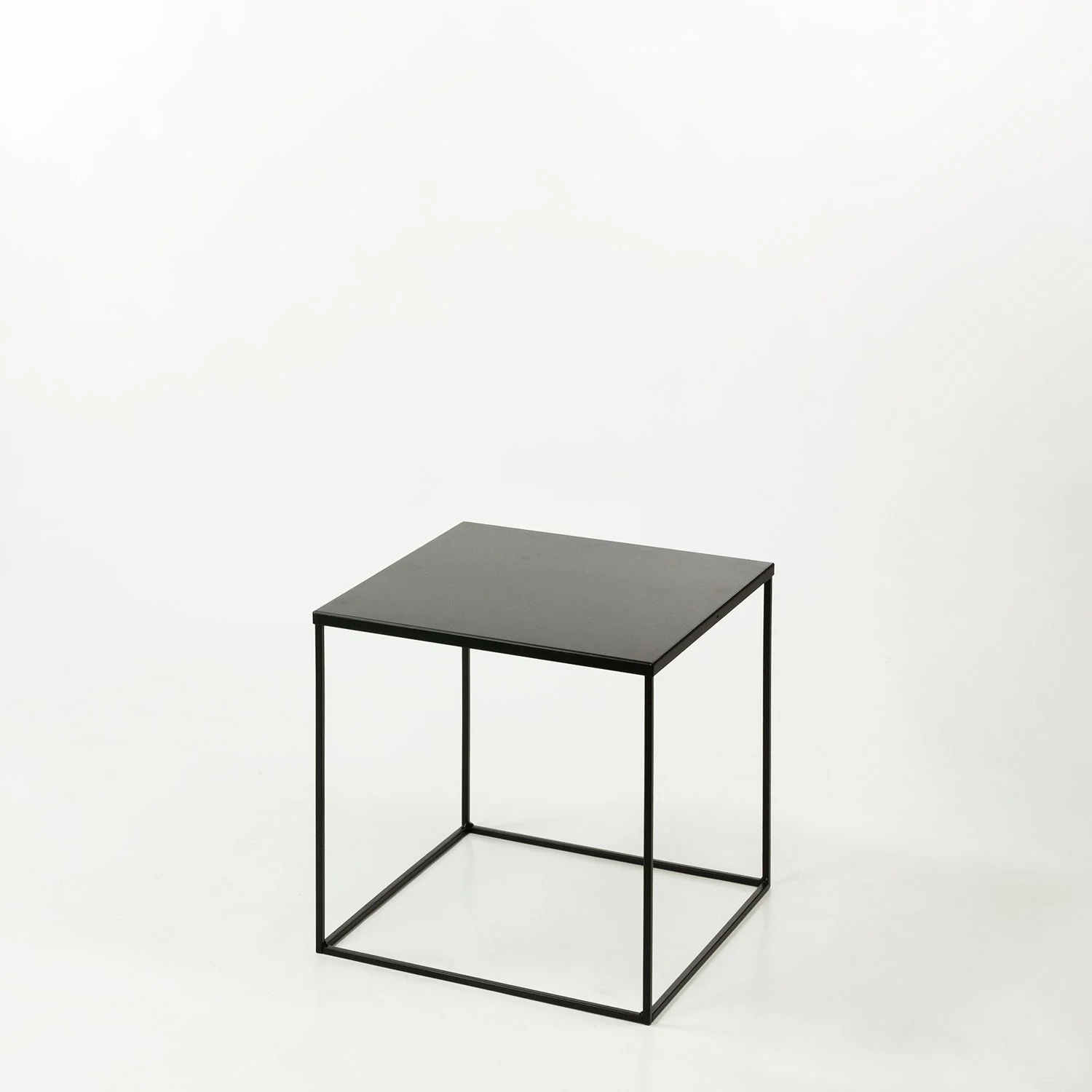 Tavolino vetrina in tubino cm.1 di ferro in finitura verniciato nero piano removibile .