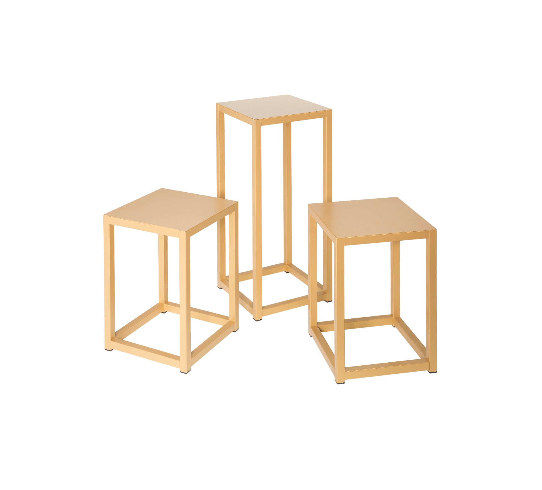 Tavolino espositivo in ferro verniciato oro cm.32x32x45h, struttura in tubo quadro cm.2,5×2,5 piano in lemiera