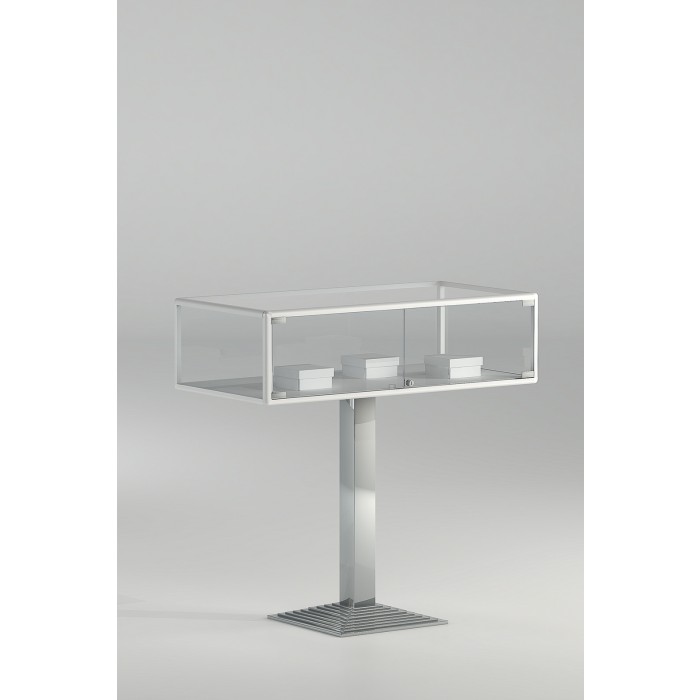 Vetrina a Teca con profili in alluminio in colore bianco , su piantana misura cm.99x49x100h